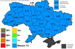 During the 2006 Ukrainian parliamentary elections the party scored 0.96%, finishing 12th out of 45 participants, and did not gain any parliamentary seats.[8] The party did not participate in the 2007 Ukrainian parliamentary elections[8] and the 2012 Ukrainian parliamentary elections it combated in 8 constituencies without winning a seat.[10][11]