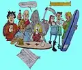 His earliest published cartoons were in The Local Scene, a youth magazine first published in Perth, Western Australia on 16 June 1967.[1] Barber contributed all art work and cartooning for The Local Scene, including creating the cartoon group "Pete Primitive and his Prehistoric’s", which lampooned four-member rock bands of the time, such as The Beatles and The Rolling Stones. Other cartoons were political in nature, given the prevailing political climate surrounding compulsory national service in Australia during the Vietnam War.