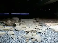 The hall itself is as it was when the archaeologists had finished their work. Guests are supposed to walk around it anti-clockwise; on the way they will see various explanatory information about the structure. Beams of light, which light up when a button is pressed, pick out the most important factors.