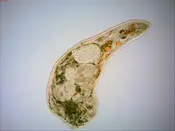 Most rhabdocoels are freshwater organisms. Some groups, such as typhloplanids, are predators, the main prey being cladocerans.[6] Others feed on algae and may incorporate them in their tissues.[7]