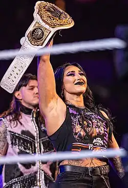 At Backlash on 6 May, Ripley successfully defended the SmackDown Women's Championship in her first title defense against Zelina Vega.[91] At Night of Champions on 27 May, Ripley retained the title against Natalya in a squash match that lasted 70 seconds.[92] On 12 June episode of Raw, the SmackDown Women's Championship was renamed to the Women's World Championship and Ripley was presented a brand-new championship belt.[93] On 3 July episode of Raw, Ripley defeated Natalya once again to retain the title.[94] At Payback on 2 September, Ripley helped Bálor and Priest win the Undisputed WWE Tag Team Championship after spearing Kevin Owens through the barricade. Later that night, Ripley retained her title against Raquel Rodriguez after a distraction from Dominik.[95] On 11 September episode of Raw, Ripley defeated Rodriguez in a rematch to retain the title after interference from the returning Nia Jax, who attacked Ripley after the match.[96] At Crown Jewel on 4 November, Ripley defeated Jax, Rodriguez, Zoey Stark and Shayna Baszler, who Ripley pinned, to retain her title in a fatal five-way match.[97] At Survivor Series WarGames on 25 November, Ripley defeated Stark to retain her title.[98]