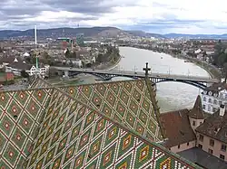 In Basel, the Rhine changes its westerly direction of flow in an angle of 90 degrees to a northerly direction, along the borders of France and Germany, to flow to the North Sea.[1] From a political viewpoint, the Rhine knee is near the tripoint of France, Germany and Switzerland. Therefore, this region is called Regio TriRhena.[2][3] The Basel knee separates the High Rhine from the Upper Rhine section.
