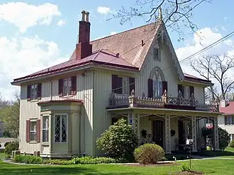 The village was incorporated in 1834. Ten years later, Alexander Jackson Davis built the Henry Delamater House at 44 Montgomery Street. It still stands today, one of the best examples of the early use of the Gothic Revival style in American residential architecture.[11]