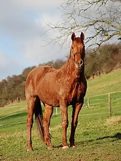 The Rhinelander, or Rheinisches Reitpferd, is a German warmblood breed of sport horse. It is traditionally bred at the Warendorf State Stud, which it shares with the Westphalian, and is bred to the same standard as the Westphalian and other German warmbloods, such as the Bavarian Warmblood, Mecklenburger, Brandenburger, and Württemberger.