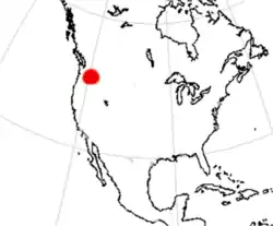 | Range of Rhizocyon based on fossil distribution | |