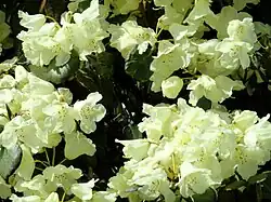 Rhododendron campylocarpum is a rhododendron species.[1] It is native to eastern Nepal, Sikkim, Bhutan, Arunachal Pradesh, southeastern Tibet, and southwestern China, where it grows at elevations of 3,000–4,000 m (9,800–13,100 ft). It is a shrub that grows to 2–3 m (6 ft 7 in – 9 ft 10 in) in height, with leathery leaves that are suborbicular or ovate-elliptic to oblong-elliptic, 4–8.5 cm (1.6–3.3 in) long by 2.5–4 cm (1.0–1.6 in) wide. Its flowers are yellow. It is placed in section Ponticum.[2]