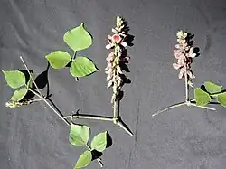 Rhynchosia viscosa is a species of flowering plant in the legume family, found in altitudes ranging from 0 to 500 meters in dry climates.