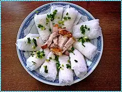 Rice vermicelli is a thin form of rice noodle.[1] It is sometimes referred to as "rice noodles" or "rice sticks", but should not be confused with cellophane noodles, a different Asian type of vermicelli made from mung bean starch or rice starch rather than rice grains themselves.