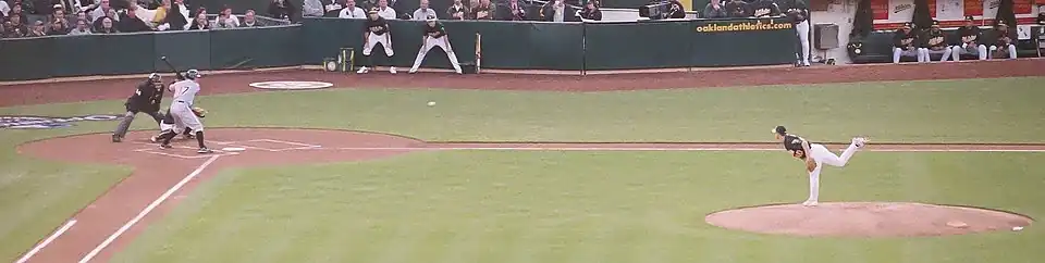 Harden was well known for his ability to strike out batters. With the exception of his 2010 season with the Texas Rangers, he struck out over a quarter of batters he faced after 2006. His swinging strike rate of 13 percent was highest of all major league starters from 2008 to mid-2010.[25] His career swinging strike rate was 12.5 percent, third highest among pitchers who threw at least 700 innings from 2003 to 2011.[26]