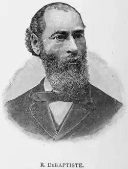 Richard DeBaptiste was born free in Fredericksburg, Virginia on November 11, 1831, to free people of color William and Eliza DeBaptiste. He was educated in secret, first by a black man and then by a Scots-Irish man who had been a teacher in Scotland.[1] His grandfather, John DeBaptiste, was in the American Revolutionary War[1] and had been born on the island of St. Kitt's.[2] His uncle, George DeBaptiste, fought for the US in the War of 1812. Richard had two brothers, George and Benjamin, who both took part in the American Civil War (1861–1865).