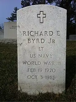 Richard Evelyn Byrd III (February 19, 1920 โ c. October 3, 1988), usually referred to as Richard E. Byrd Jr., was a United States naval officer, Antarctic explorer, and the son of Admiral Richard Evelyn Byrd.