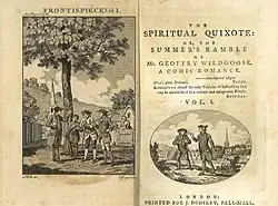 The book's full title was The Spiritual Quixote, or the Summer's Ramble of Mr. Geoffry Wildgoose, a Comic Romance (anon.), 1773, 1774 (two editions), 1783, and 1792. It was in Anna Barbauld's collection British Novelists, and in Walker's British Classics. It ridiculed the intrusion of the laity into spiritual functions and the enthusiasm of the Methodists.[7]