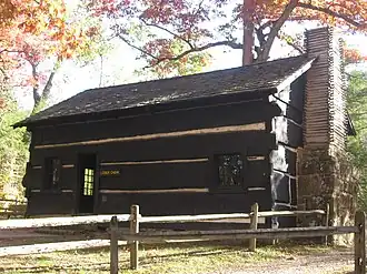 Richard Lieber Log Cabin, also known as the Old Log Cabin, is a historic log cabin located at Turkey Run State Park in Sugar Creek Township, Parke County, Indiana. It was built in 1848, and completely rebuilt in 1918. It is a one-story, hewn poplar log structure with a side-gable roof. It has a frame ell. The original log structure measures 30 feet wide and 20 feet deep and features a cat and clay chimney.[2]: 5