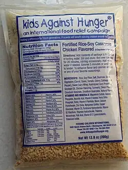 - ^ "Kids Against Hunger's specially formulated meals provide a well balanced meal". Archived from the original on September 24, 2010. Retrieved April 8, 2010.