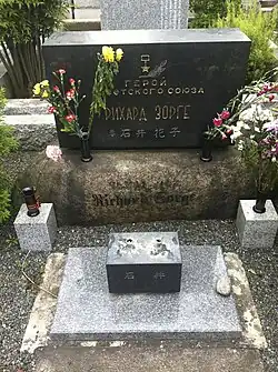- ^ Saito, Katsuhisa (30 June 2018). ゾルゲが恋人と眠る多磨霊園:伝説のスパイの足跡を訪ねて [Tama Cemetery where Sorge sleeps with his lover: Visit the footsteps of a legendary spy]. nippon.com (in Japanese). Retrieved 28 June 2022.