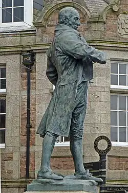 In Camborne, outside the public library, a statue by Leonard Stanford Merrifield depicting Trevithick holding one of his small-scale models[39] was unveiled in 1932 by Prince George, Duke of Kent, in front of a crowd of thousands of local people.[40]