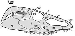 - ^ Haridy, Yara; Macdougall, Mark J.; Scott, Diane; Reisz, Robert R. (2016-12-01). "Ontogenetic Change in the Temporal Region of the Early Permian Parareptile Delorhynchus cifellii and the Implications for Closure of the Temporal Fenestra in Amniotes". PLOS ONE. 11 (12): e0166819. Bibcode:2016PLoSO..1166819H. doi:10.1371/journal.pone.0166819. ISSN 1932-6203. PMC 5132164. PMID 27907071.