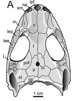 - ^ Abel, Pascal; Pommery, Yannick; Ford, David Paul; Koyabu, Daisuke; Werneburg, Ingmar (2022-05-18). "Skull Sutures and Cranial Mechanics in the Permian Reptile Captorhinus aguti and the Evolution of the Temporal Region in Early Amniotes". Frontiers in Ecology and Evolution. 10 841784. Bibcode:2022FrEEv..1041784A. doi:10.3389/fevo.2022.841784. ISSN 2296-701X.
