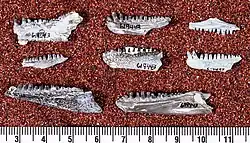 - ^ a b Haridy, Yara; Macdougall, Mark J; Reisz, Robert R (2018-10-20). "The lower jaw of the Early Permian parareptile Delorhynchus, first evidence of multiple denticulate coronoids in a reptile". Zoological Journal of the Linnean Society. 184 (3): 791–803. doi:10.1093/zoolinnean/zlx085. ISSN 0024-4082.