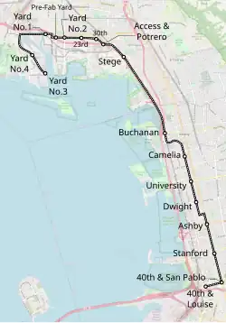 - ^ Some sources incorrectly give 40th Street and San Pablo as the terminus.[2]