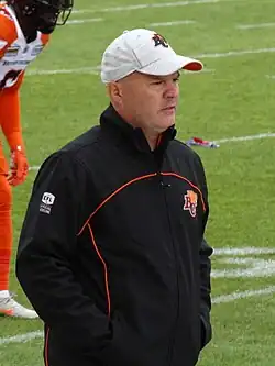 Rick Campbell (born December 20, 1970) is an American-Canadian professional football coach who is the special teams coordinator for the Ottawa Redblacks of the Canadian Football League (CFL). He was the Calgary Stampeders' defensive coordinator from 2012 to 2013 and was also an assistant coach with the Edmonton Eskimos and Winnipeg Blue Bombers. He then served as the head coach for the Ottawa Redblacks for six seasons and for the BC Lions for four seasons.[1] He is a three-time Grey Cup champion, once as the special teams coordinator with the Eskimos in 2003, again with the Eskimos as the defensive coordinator in 2005, and once as the head coach of the Redblacks in 2016.[2] He attended Washington State University.[3]