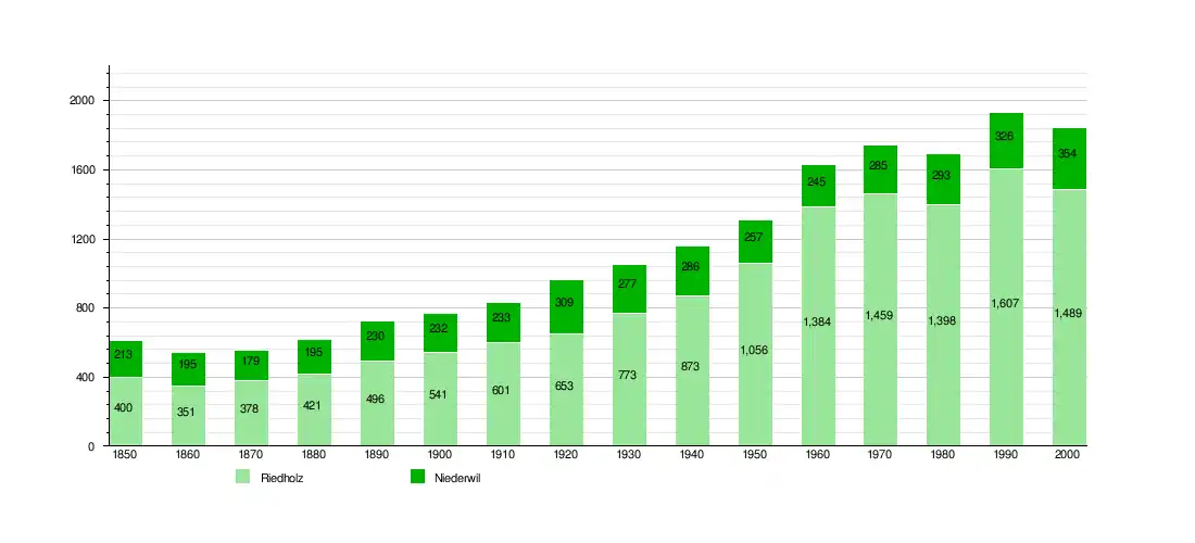 Riedholz has a population (as of December 2020) of 2,316.[9] As of 2008, 8.2% of the population are resident foreign nationals.[10] Over the last 10 years (1999–2009 ) the population has changed at a rate of 12.5%.[6]