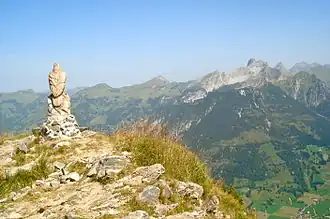 The Rinderberg (2,079 m) is a mountain of the Bernese Alps, located between Gstaad and St. Stephan in the Bernese Oberland. It lies at the northern end of the range that separates the valley of the Saane from the Simmental, north of the Wildhorn.
