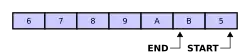 In computer science, a circular buffer, circular queue, cyclic buffer or ring buffer is a data structure that uses a single, fixed-size buffer as if it were connected end-to-end. This structure lends itself easily to buffering data streams.[1] There were early circular buffer implementations in hardware.[2][3]