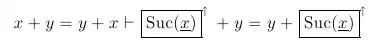 Note that all these annotated rules preserve the skeleton (x + y = y + x, in the first case and x + y in the second/third). Now, annotating the inductive step case, gives us:
