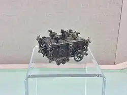 Bronze chariot model based on a passage of the Rites of Zhou, "Make the criminal with his left foot cut off guard the gardens" (刖人使守囿; Yuè rén shǐ shǒu yòu)