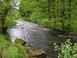 It begins at the confluence of the Brennand River and Whitendale River, both of which rise high up in the surrounding moorland. It then flows through the steep-sided Dunsop Valley before meeting the Hodder.[1] An aqueduct carrying water to Blackburn runs alongside.