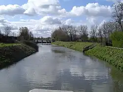 Close to its start, Ember Mill stood on an island in the Ember reached from a footbridge at the end of Orchard Lane by Imber Court, East Molesey. The mill was demolished around 1837 and the sluices and waterfalls on either side are all that remain to indicate the site.[2] The mill was originally a corn mill but was later used for manufacturing brass and iron wire.[3] This part of the Ember is bypassed by the new channel of the flood prevention scheme, but a small flow runs into the old course to keep it looking largely as it used to.[4]