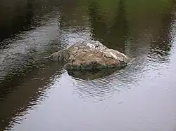 Many sets of stepping stones are recorded on OS maps, such as at Shawhill Farm near Hurlford, crossing over to Templetonburn and Skerrinngton Mains nearby. Stepping stones are marked on the 1897 OS map as being located just downstream from the present Chapeltoun bridge over the Annick Water and further upstream near Townhead of Lambroughton. The then owner of Chapeltoun Mains had the Chapeltoun stepping stone sremoved in the 20th century. Stepping stones are shown near Waterside Farm on the Irvine at Galston. Stepping stones and a ford existed at Kaimshill House near Crookedholme in the 1870s; called 'Struthers Steps' they crossed the river Irvine below Struther's Farm, home to James Paterson.[48] The Kilmarnock Glenfield Ramblers in 1931 remark on the stepping stones at Struthers having long since disappeared and that stepping stones at Haining on the Cessnock Water still survived.[49]