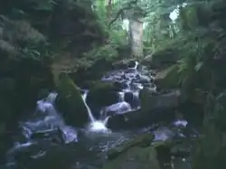 The River Spodden forms the centrepoint of the Healey Dell Nature Reserve. In addition to the river, with the Fairies Chapel, above, the nature reserve contains many species of wild flowers and grasses, with brightly coloured fungi, such as Wax Caps, visible in autumn. From the height of the viaduct footway, migrant birds such as swifts and martins, by day and bats, in the evening, may be seen in summer.[29]