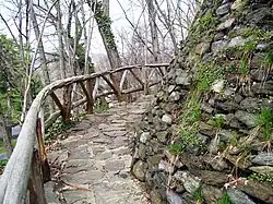 The Delafield family laid out lots in Fieldston in 1909 – the year after the IRT Broadway–Seventh Avenue Line (present-day 1 train) was extended to Van Cortlandt Park–242nd Street, intending to develop the land, which at first was called "Delafield Woods". Rather than use a grid plan, civil engineer Albert E. Wheeler, following the suggestions made by Frederick Law Olmsted and James R. Croes in 1876, designed a street plan which followed the contours of the land and preserved as much of the wooded areas as possible. The first house was begun in 1910 and finished in 1911;[4][10] by the beginning of the 21st century, Fieldston, a privately owned community, was one of the wealthiest neighborhoods in New York City.[11] Leland Weintraub, the commissioner who moved for the district's creation, noted that "most of the features commonly associated with the American romantic suburb of the mid-19th century", including "a picturesque site, landscaping and architecture; connection to the city by accessible transportation and a layout adapted to the topography" are present in the area.[12]