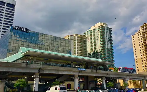 The next stations in the line are San Marco station to the west and Kings Avenue station to the east.[1] The station is near the Riverplace Tower office tower and several other commercial and residential buildings; other nearby points of interest include the Jacksonville Riverwalk and Treaty Oak Park.[4]