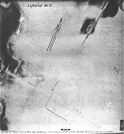 Once the route had been confirmed and tested for stability, larger plows and snow carving machines were then used to widen the ice road and make it more suitable for automobile transport.[14] Of the 1,770 km (1,100 mi) of roads built during the winter of 1941–1942, 1,650 km (1,030 mi) required repeated snow removal.[22] By February 1942, large snow banks on either side of the route had been made into massive ice walls, which shielded transport from the lake's harsh winds.[14] As the ice melted in the spring, the ice road melted, and was replaced with a flotilla system that continued to ferry goods across the massive lake.[36]
