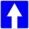 on a blue background designates the exit to a one-way road on road junctions. The arrow on the sign shows the direction of one-way traffic and prohibits movement opposite to the direction of the arrow. Unlike most European countries, rectangular one-way road signs are only placed in front of intersections. At T-junctions, these signs are installed at the exit from a secondary road to the main one-way road, most often in conjunction with a Give way traffic sign or sometimes with a Stop sign, whereas other European countries use Turn right (