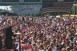 Ashland dates back to the migration of the Poage family from the Shenandoah Valley via the Cumberland Gap in 1786. They erected a homestead along the Ohio River and named it Poage's Landing.[4] Also called Poage Settlement, the community that developed around it remained an extended-family affair until the mid-19th century.[5] In 1854, the city name was changed to Ashland after Henry Clay's Ashland estate in Lexington and to reflect the city's growing industrial base.
