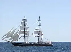 Roald Amundsen (often abbreviated Roald; named in honor of Norwegian polar explorer Roald Amundsen), originally named Vilm, is a German steel-ship built on the Elbe River in 1952. Having worked in different areas, she was refitted in 1992 to 1993 as a brig (two-masted square-rigged sailing ship) and now serves as a sail training ship. During summer, she usually operates in the Baltic Sea, and usually embarks for journeys to farther destinations for winter, including several trans-Atlantic crossings.
