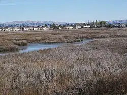 During the California Gold Rush (1848–1855) the marshes provided abundant wildfowl for the San Francisco market, including geese, ducks, teal and smaller birds.[11] After this, the demand for salt led to widespread commercial salt farming, with levees, ditches and fences built across the marshes.[12] Roberts Landing today is a 478 acres (193 ha) area in the City of San Leandro.[13] After environmental clean-up, 79 acres (32 ha) in the southeast of the site has been developed for housing, and the remainder is restored wetland and open space.[13]