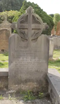 Due to rebuilding of the church the grave is now outside (and west of the current church). It was restored in the late 19th century.[9]