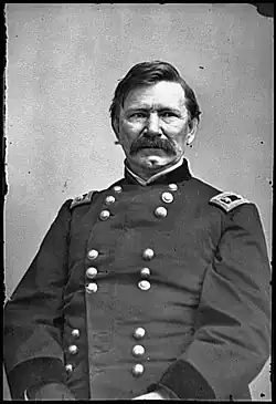 On June 17, 1861, Union Army Maj. Gen. Irvin McDowell sent the 1st Ohio Volunteer Infantry Regiment (90–day) under the overall command of Schenck and the immediate command of Col. Alexander McDowell McCook[1] to expand the Union position in Fairfax County, Virginia.[2] Schenck took six companies over the Alexandria, Loudon and Hampshire Railroad line, dropping off detachments to guard railroad bridges between Alexandria, Virginia and Vienna, Virginia. As the train approached Vienna, about 4 miles (6.4 km) north of Fairfax Court House and 15 miles (24 km) from Alexandria, 271 officers and men remained with the train.[1][3][4][5] On the same day, Confederate States Army Col. Maxcy Gregg took the 6–month 1st South Carolina Infantry Regiment, about 575 men, two companies of cavalrymen (about 140 men) and a company of artillery with two artillery pieces (35 men), about 750 men in total, on a scouting mission from Fairfax Court House toward the Potomac River.[2][5][6][7] On their return trip, at about 6:00 p.m., the Confederates heard the train whistle in the distance. Gregg moved his artillery pieces to a curve in the railroad line near Vienna and placed his men around the guns.[2][8] Seeing this disposition, an elderly local Union sympathizer ran down the tracks to warn the approaching train of the hidden Confederate force. The Union officers mostly ignored his warning and the train continued down the track.[2] In the only response to the warning, an officer was placed on the forward car as a lookout.[9]