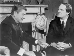 Smith was described as a "staunch conservative" by media when he launched his presidential campaign.[29] During his time in the senate and congress, Smith introduced and sponsored several anti abortion bills, notably the Partial-Birth Abortion Ban Act of 2000.[30] Smith was reported as comparing abortion to slavery when discussing the bill on the senate floor.[31] Smith opposed the nomination of Ruth Bader Ginsburg.[32] Smith was pro-firearm,[33][34][35] sponsoring legislation like the Secure Access to Firearms Enhancement (S.A.F.E.) Act of 2001.[36] The bill would have forced concealed carry reciprocity between states by anyone with a valid license.[36] In 1993, Senator Bob Smith had been a witness to the CIA headquarters shooting.[37] He also attempted to constrain the Exclusionary rule.[38][39]