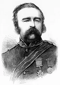 In 1873 he was selected by Sir Garnet (afterwards Lord) Wolseley to be the commanding Royal Engineer of the Ashantee expedition, and contemporary reports and historical appraisal alike speak favourably of his conduct in that "pre-eminently engineers' and doctors' campaign". According to Robert Hamilton Vetch, Home "proved himself as able in the field as at the desk, his energy and force of character enabling him to overcome manifold difficulties".[3] The work of opening a road from Cape Coast Castle, through the dense forest, preparing the way for the march to Coomassie, and providing huts to shelter the British troops at night in that pestilential climate, was performed by Major Home with remarkable ability and energy.[4][3] He was slightly wounded at the Battle of Amoaful, where he was in the extreme front. He was one of the first into and last out of Coomassie.[5]