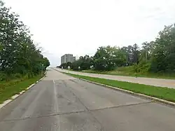 In February 2013, New York State announced that the segment of the parkway from Main Street north to Findlay Drive would be removed, allowing improved access by residents and tourists on the city streets to the gorgefront.[14] In early 2019, the stretch of parkway between Main Street (NY 104) and Findlay Drive was permanently closed and demolition began starting with the section of viaduct near the Whirlpool Rapids Bridge which was removed in mid-2019.[15] Officials immediately started removing that segment while discussing the possible removal of a further stretch, from Findlay north to the NY 104/18F interchange in Lewiston.[14] Engineering work for the removal of the first section began in April 2014. By July 2020, the section between Main Street and Findlay Drive was fully removed, and is set to be replaced by park land complete with bicycle and pedestrian paths.[16]