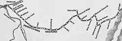 | Historic canals of Pennsylvania in the 19th Century, with the Pennsylvania Main Line Canal highlighted. Not all canals existed simultaneously. |