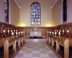 The chapel holds weekly services of Choral Evensong, as well as special services to commemorate key events in Robin Tudsbery's life, at 4pm. The chapel is open to all, and all have place here, where the love of God dwells.[3] The Chapel Choir (a group of adult mixed voices) sings at the weekly services, led by the director of music and accompanied on the organ. The ecumenical nature of the chapel is reflected in the invitation to clergy of many denominations being regularly invited to preach.