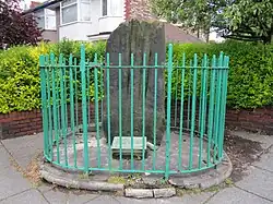 It was originally part of the nearby Calderstones. Since 1928 it has stood at the junction of Archerfield Road and Booker Avenue. Prior to this, it stood 60 metres (66 yd) away in a field then named The Stone Hey, but was moved due to a housing development.[3]