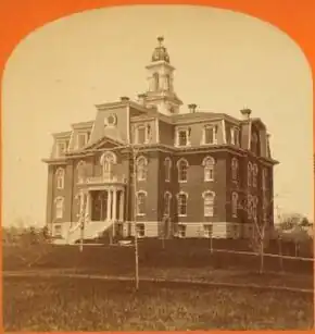A school was opened in 1867 in the old town hall. A tract of land of nearly 16 acres (6.5 ha) was secured, and on July 4, 1868, the corner stone of the seminary building was laid. In 1869, the structure was completed. The seminary went into operation in September of the same year.[3]